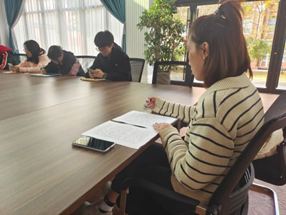 团委副书记宋高妮带领政治理论学习小组以“研读+讨论+联系实际”的形式深入学习习近平总书记在主持中共中央政治局第一次集体学习中所强调的“全党要在全面学习、全面把握、全面落实上下功夫,坚定不移把党的二十大提出的目标任务落到实处,奋力夺取全面建设社会主义现代化国家新胜利”。